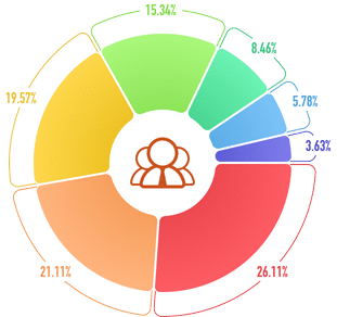 公司港航工程类、路桥工程类、轨道交通类、建筑工程及房地产类、工程综合类、信息技术类、综合管理类专业人员分别占比15.34%、26.11%、5.78%、8.46%、19.57%、3.63%、21.11%
